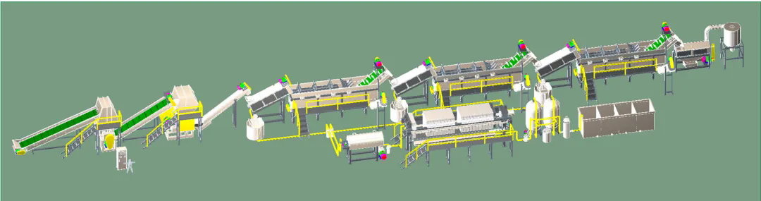 PET瓶清洗回收生产线又称PET塑料瓶破碎清洗回收生产线,聚酯瓶回收流水线,宝特瓶粉碎清洗干燥回收生产线,适用于废旧PET瓶(如矿泉水、可乐等各类塑料瓶)的去标,破碎,清洗,干燥,包装的整套生产设备,废旧PET塑料瓶加工成聚酯瓶片的整套处理方案,将废旧PET塑料瓶加工成可再生利用的高品质PET瓶片。